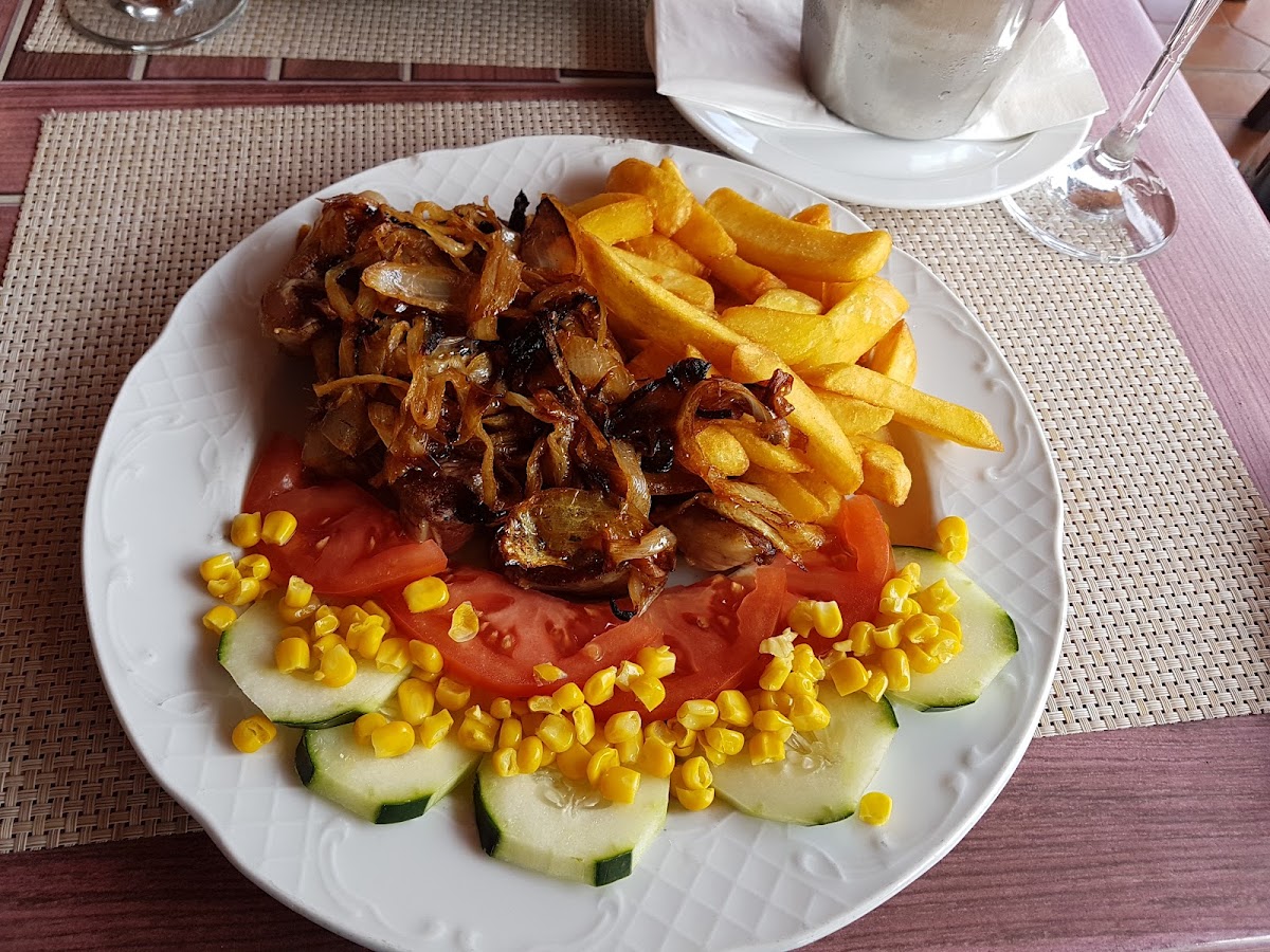 Very nice place, very decent food with extremely low prices. I had a good time here alto rest a bit I ate garlic shrimps, they were good, very simple, littlerally just shrimps with garlic, had to ask for extra rice with it which costs 2.50€.