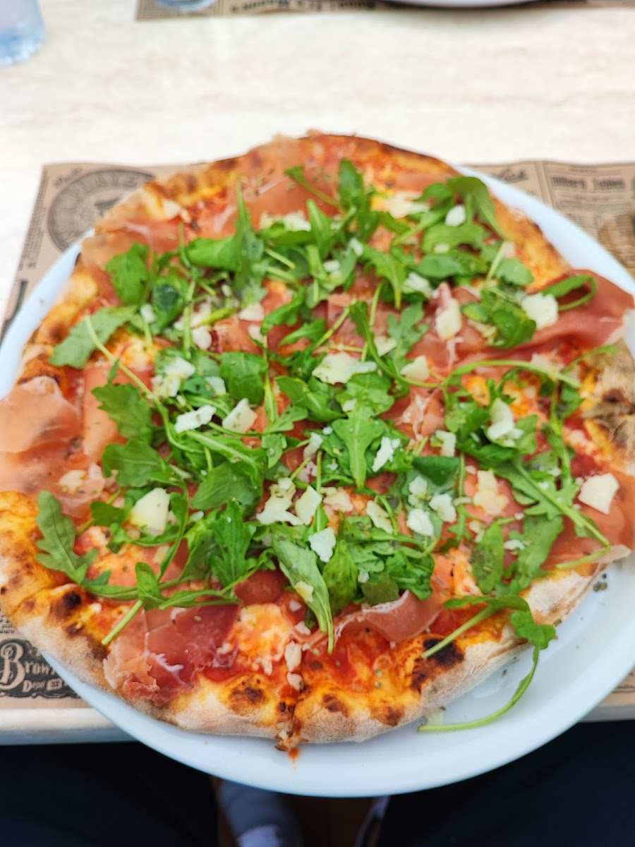 I have to say, the pizza here was delicious. But I am marking this review down due to lack of staff attentiveness which let the end of the evening down. I am unsure if this is normal, but they only had one staff member covering the floor. She took our order quickly, and it arrived quickly. But there it stopped. Getting extra drinks was difficult, and we wanted dessert but there was no staff to be seen (I noted other people complaining of this too). In the end we gave up on the idea and I had to go inside to find her, where she was just behind the bar laughing and joking with the only other member of staff. No apology, just took my payment. It left us with a bit of a sour taste. But as I say, the pizza was delicious and maybe this was a one off.